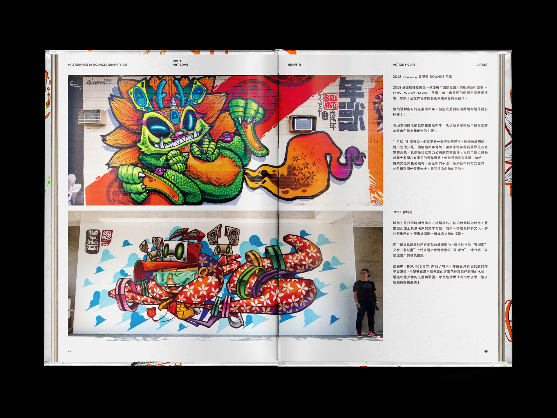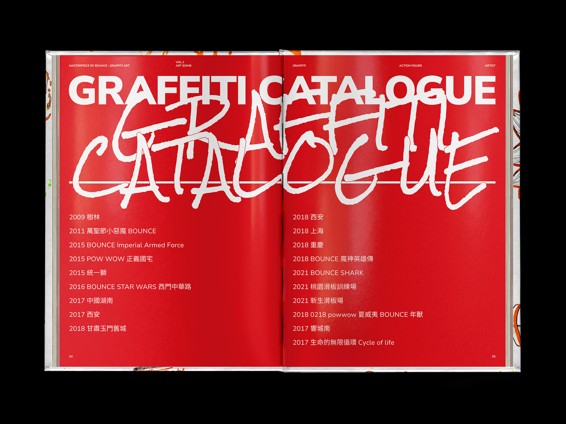 作品集的書衣是可以互動的,把書衣撕破,撕破的聲音就像噴漆罐噴出顏料的聲音,隨著聲音的堆疊,畫面也跟著堆疊。
